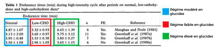 Évidemment, l’apport en glucides dans l’alimentation influence la quantité de glucose utilisée, un sujet dont j’ai parlé il y a quelques semaines. À plus grande quantité de glucides dans l’alimentation, plus l’utilisation du glucose comme source d’énergie est élevée, et donc meilleure performance dans les sports de haute intensité.