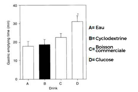 Cependant, quand on compare une boisson contenant de la cyclodextrine à une autre contenant de l’amylopectine, les résultats diffèrent.