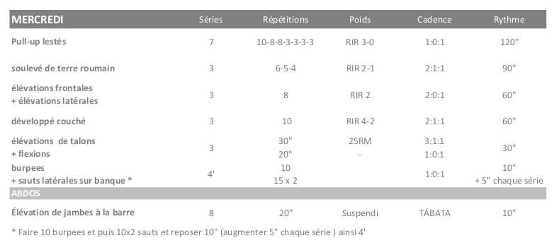 On modifie le planning, comme j’avait dit avant. Je vais faire 2 jours de crossfit et 2 de fullbody.