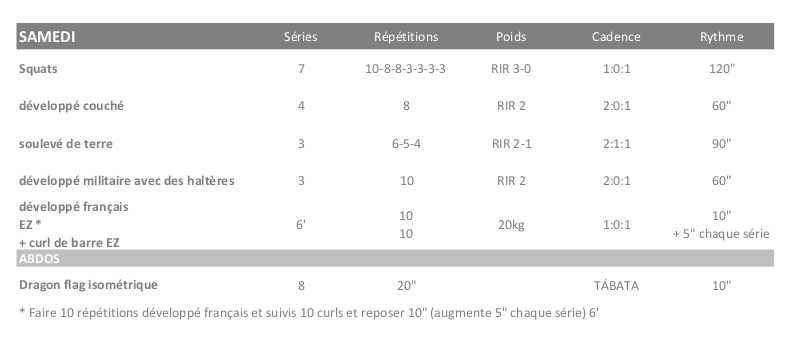 Une autre semaine dirigée au gain maximal de muscle (dans la limite de mes possibilités). Et les sensations ont été très bonnes, spécialement niveau régime, car je ne pas eu du mal a bien manger et respectant le régime.