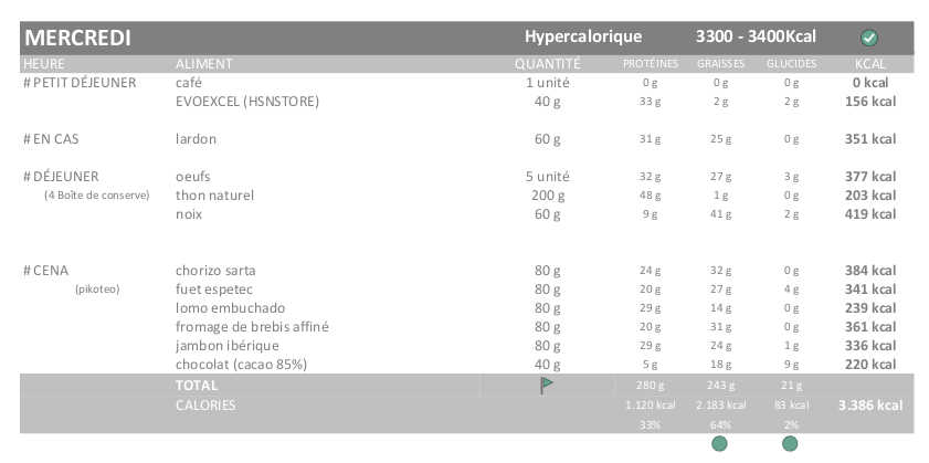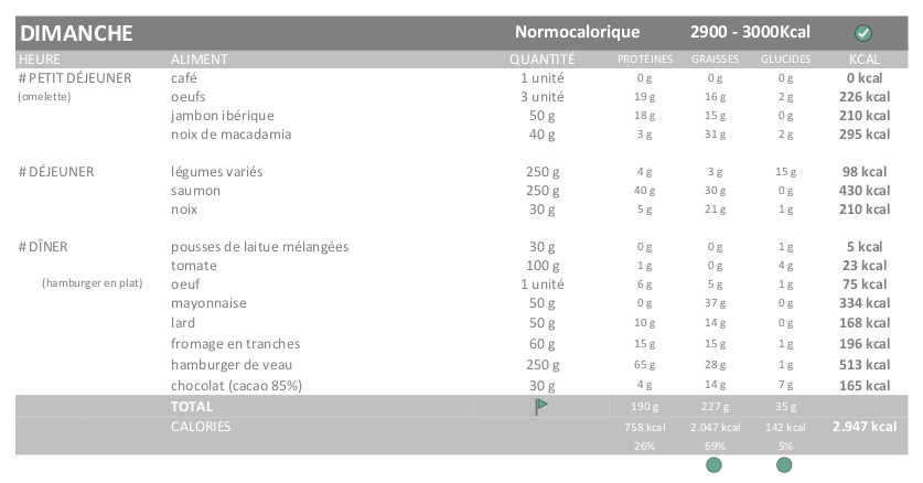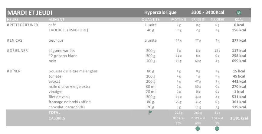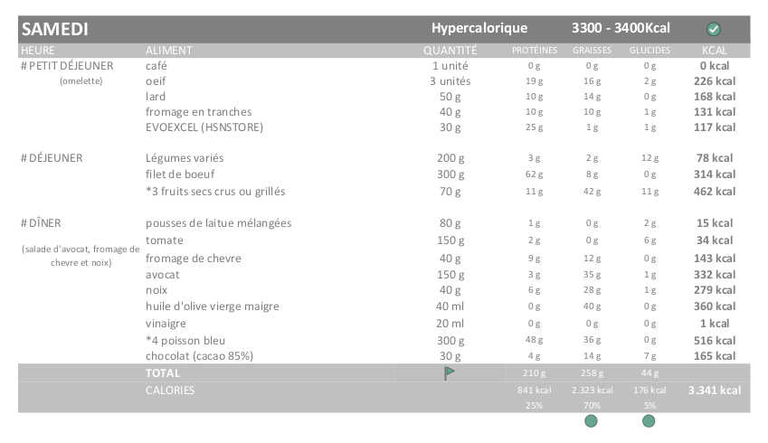 Voici le régime que je vais suivre cette semaine, avec les adaptations que j’ai dit dans le premier point :