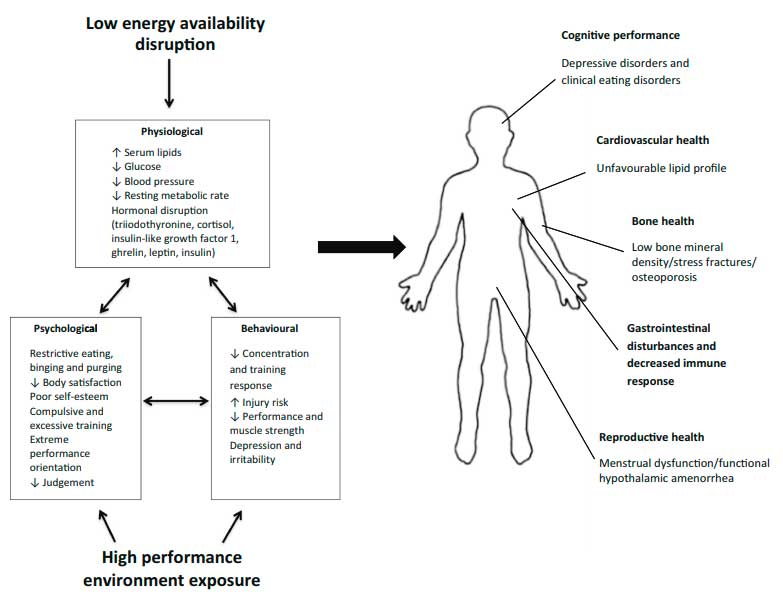 Ce concept fait référence au phénomène qui lie le manque d’énergie à la perte de masse/densité osseuse et à la fonction reproductive (aménorrhée et troubles du cycle menstruel)