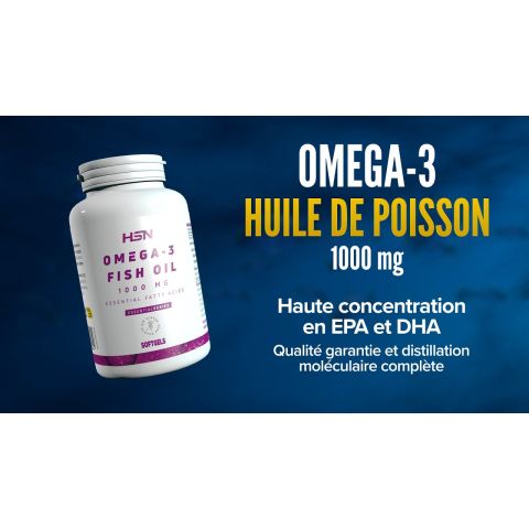 Omega-3 Huile de poisson 1000mg de HSN est un complément alimentaire à forte teneur en Omega-3.
