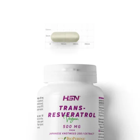 Ce complément alimentaire apporte une haute concentration de trans‑resvératrol pur (500 mg) issu d’un extrait hautement concentré de racine de Fallopia japonica (200:1), l’une des sources naturelles les plus utilisées et les plus concentrées de ce polyphénol. Il est associé à BioPerine®, un extrait breveté de Piper nigrum qui contient de la pipérine, largement employé pour son rôle dans le soutien de la biodisponibilité des composés à faible absorption intestinale.