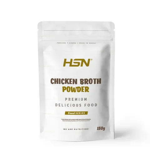 Le bouillon de poulet en poudre de HSN est riche en protéines, car il contient du collagène et de la véritable protéine de poulet dans sa composition, en plus d'être une bombe de micronutriments, contenant un large spectre de vitamines du groupe B, de la vitamine D, et d'importants minéraux comme le calcium, le potassium ou le zinc, propres au milieu de fermentation de la levure nutritionnelle contenue dans la recette.