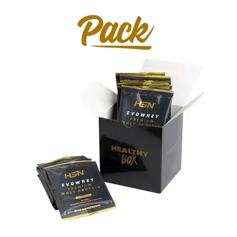 Ce pack se présente dans une boîte personnalisée par HSN, solide, avec 16 monodoses (8 saveurs différentes) d’Evowhey Protein. Evowhey est l’une des protéines les plus demandées et réussies de HSN, avec une grande qualité nutritionnelle et plein de saveurs au choix.