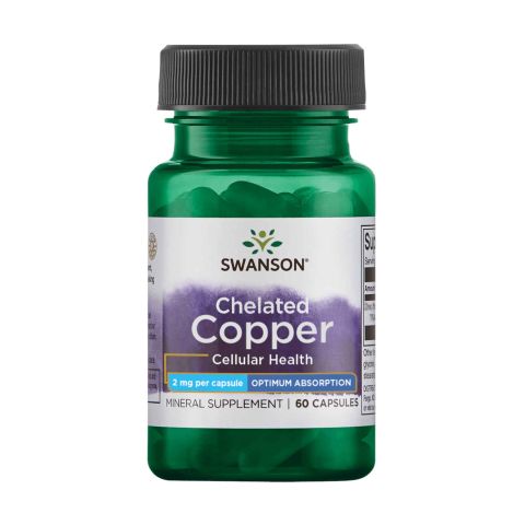 Cuivre chélaté absorbé de manière optimale. Gélules pratiques de 2mg chacune. Qualité Swanson.