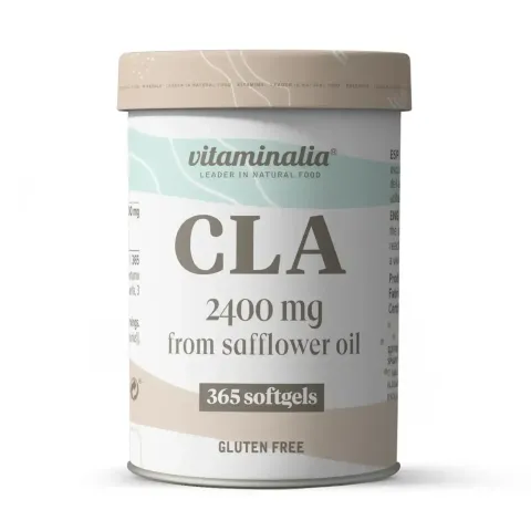 CLA 2400 mg (Acide Linoléique Conjugué) - 365 capsules de Vitaminalia est un produit sous forme de capsules, élaboré à base d'huile de graine de carthame standardisée en acide linoléique conjugué.