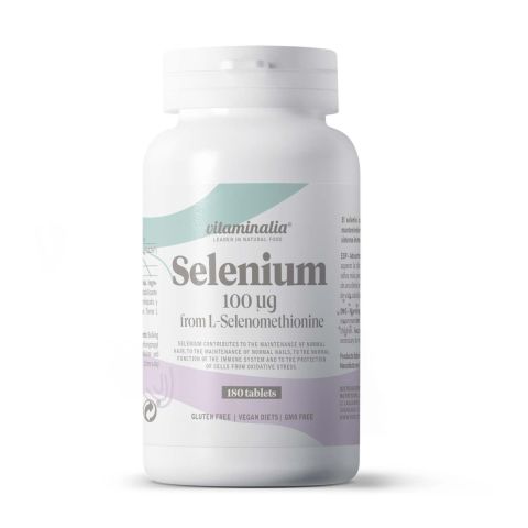 Le sélénium 100mcg - 180 Tabs de Vitaminalia est un complément alimentaire en comprimés, composé de L-Sélénomethionine, une forme organique de l'oligo-élément Selenium.