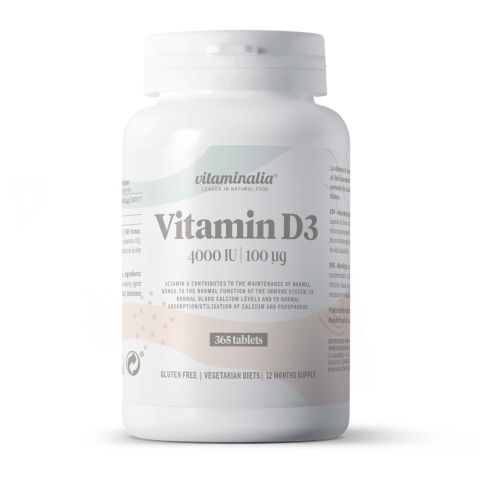 La Vitamine D3 4000 UI de Vitaminalia est un supplément alimentaire en comprimés végétariens à base de Cholécalciférol (Vitamine D3).